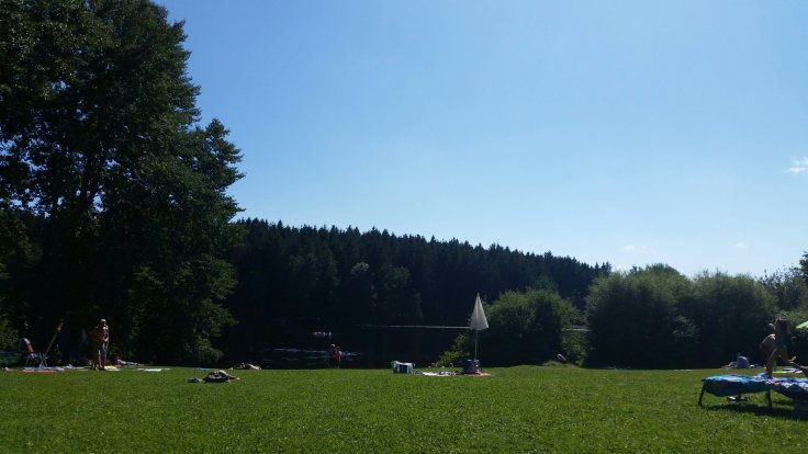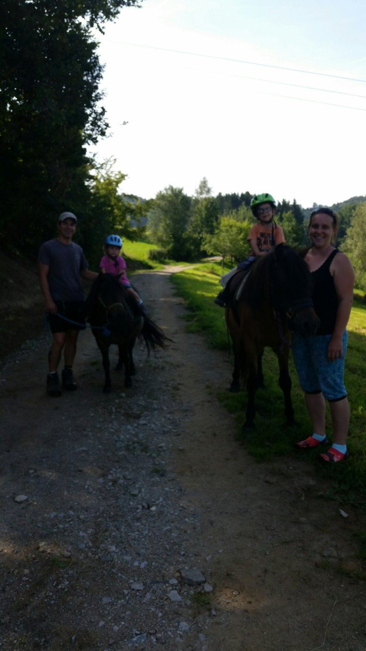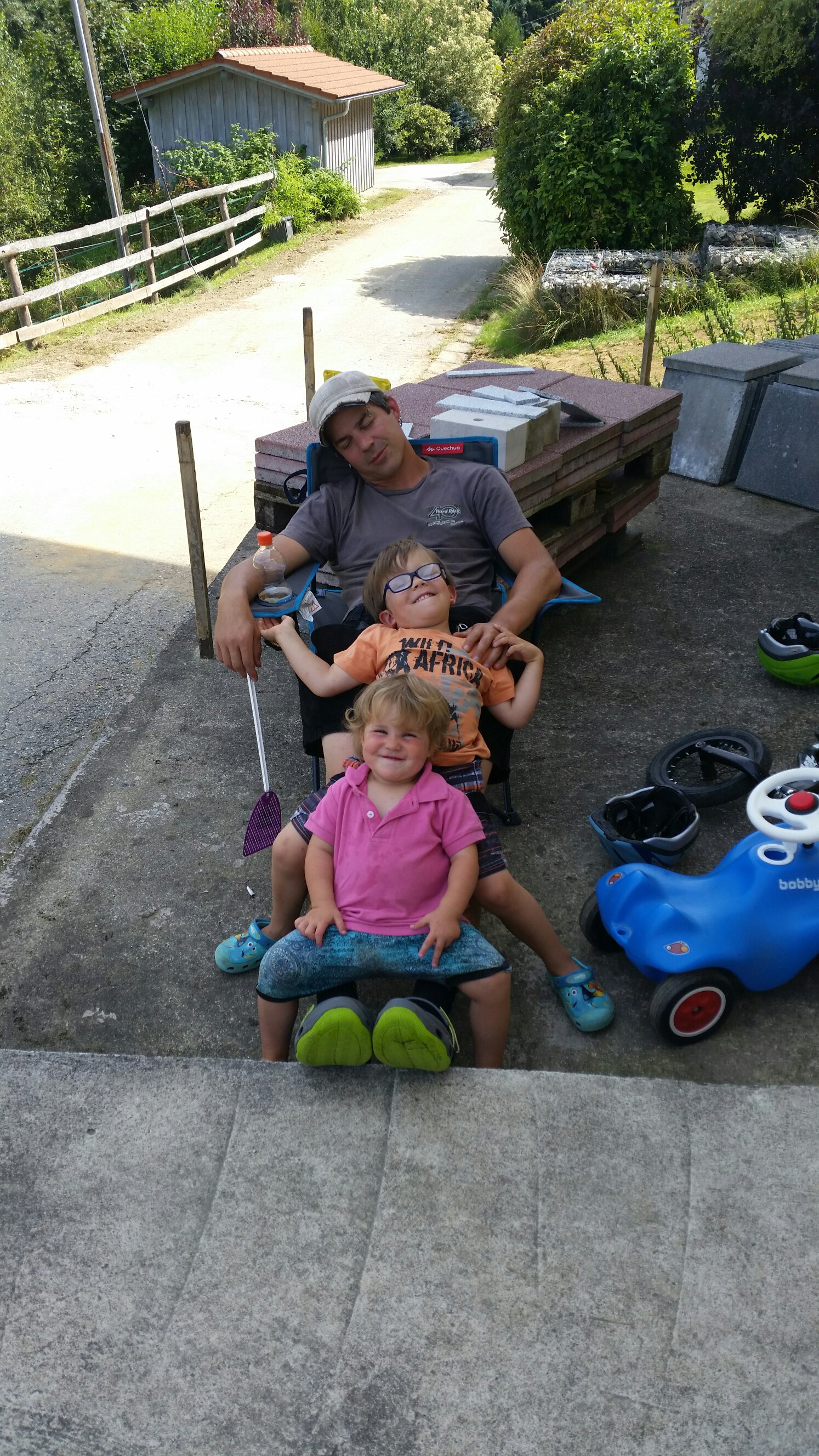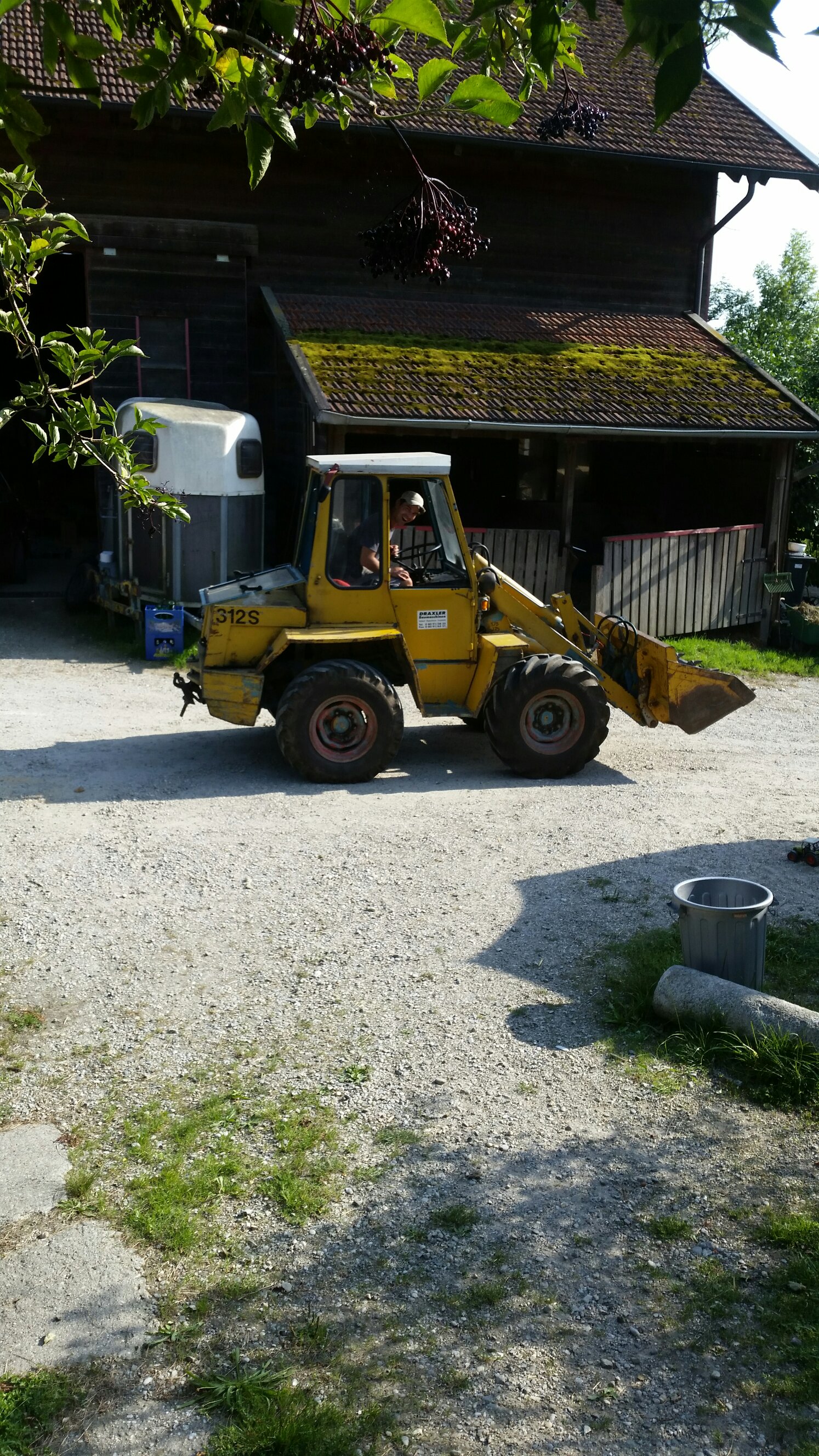 Das war wirklich schön, auch wenn Muna (offiziell) nicht mit auf die Liegewiese durfte. Anschließend sind wir zum Hof gefahren, den wir erst mal suchen mussten. Der 1. Eindruck war ernüchternd. Direkt an der Bundesstraße und überall standen Dinge herum, die quasi lebensgefährlich sein konnten. Und glaubt jetzt bloß nicht, wir sind pingelig, wir kennen nur unsere Tochter sehr gut. Die klettert dann halt auf den wackligen Holzhaufen und steckt sich die herumliegenden Schrottteile in den Mund. Nach einer ganz netten Begrüßung sind wir kurzzeitig wieder motiviert. Doch so richtig gut ist es nicht. Die Frau ist frisch getrennt von ihrem Mann und hat vier Kinder im Alter von 9,9,11 und 13. Den Kuhstall (ebenfalls sehr gefährlich und ja, es gibt auch ungefährliche Ställe) macht sie grad allein. Das Klo und das Bad das wir nutzen, teilen wir uns mit einem klassischen Fall von Altersverwesung. Uuha. Mich schüttelt es immer noch.