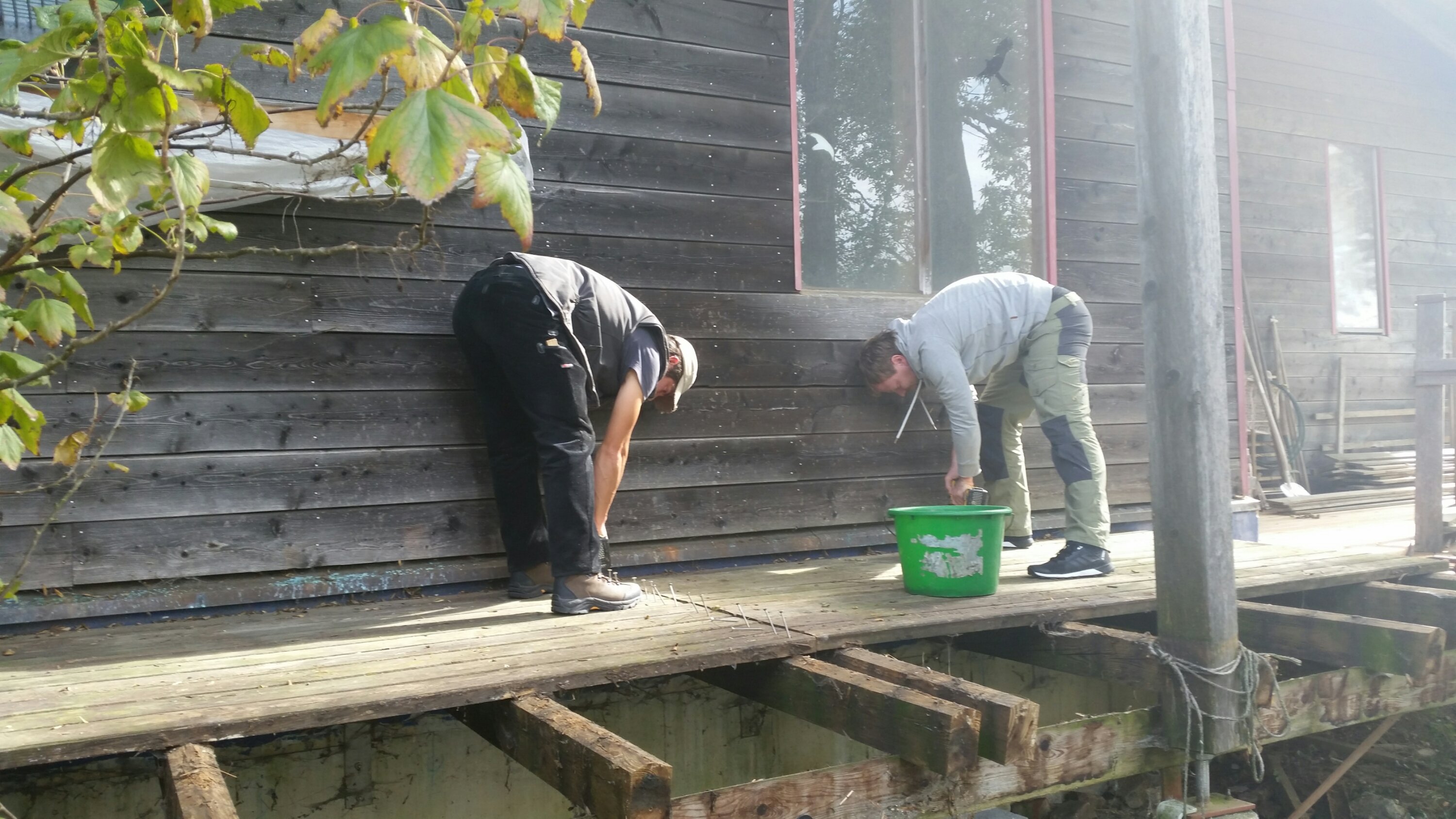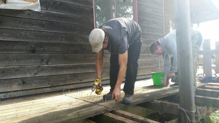 Anschließend hilft Jojo mir Stempeln und Stefan hilft Phil gefühlte 800 Schrauben aus den letzten alten Brettern der Veranda zu ziehen.