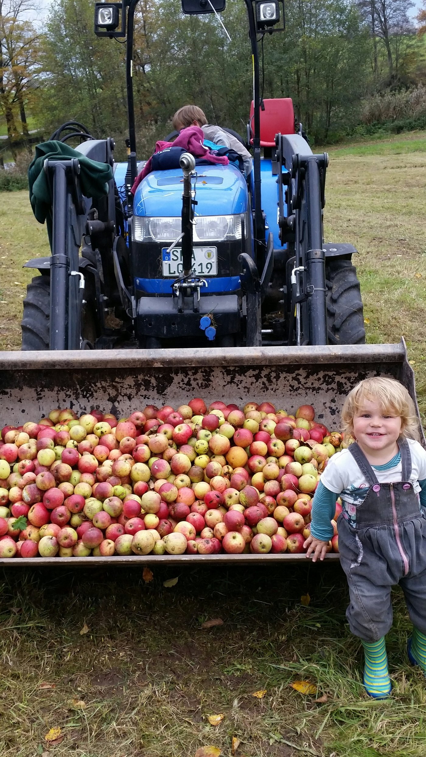 Gestern hieß es wieder Äpfel brechen (pflücken) und klauben (aufsammeln). Dieses Mal am anderen Ende des 8000 m2 großen Grundstücks.