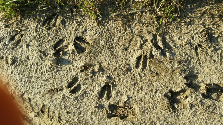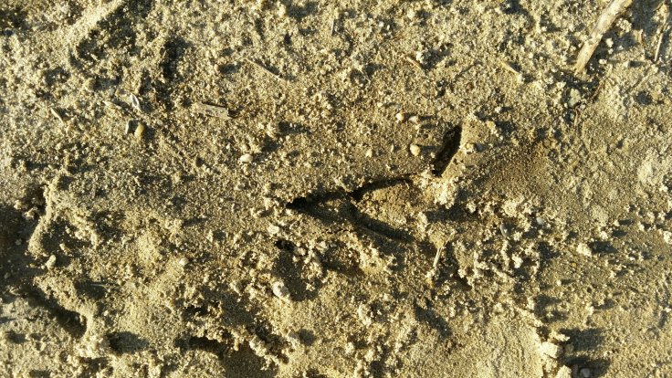 Mit Kindern spazieren kann anstrengend sein, aber auch sehr bereichernd. Kinder sehen die Welt noch mit andren Augen und während ich die Uhr im Blick habe (ich muss nochmal in Stall) entdeckt Fynn Spuren im sandigen Boden.