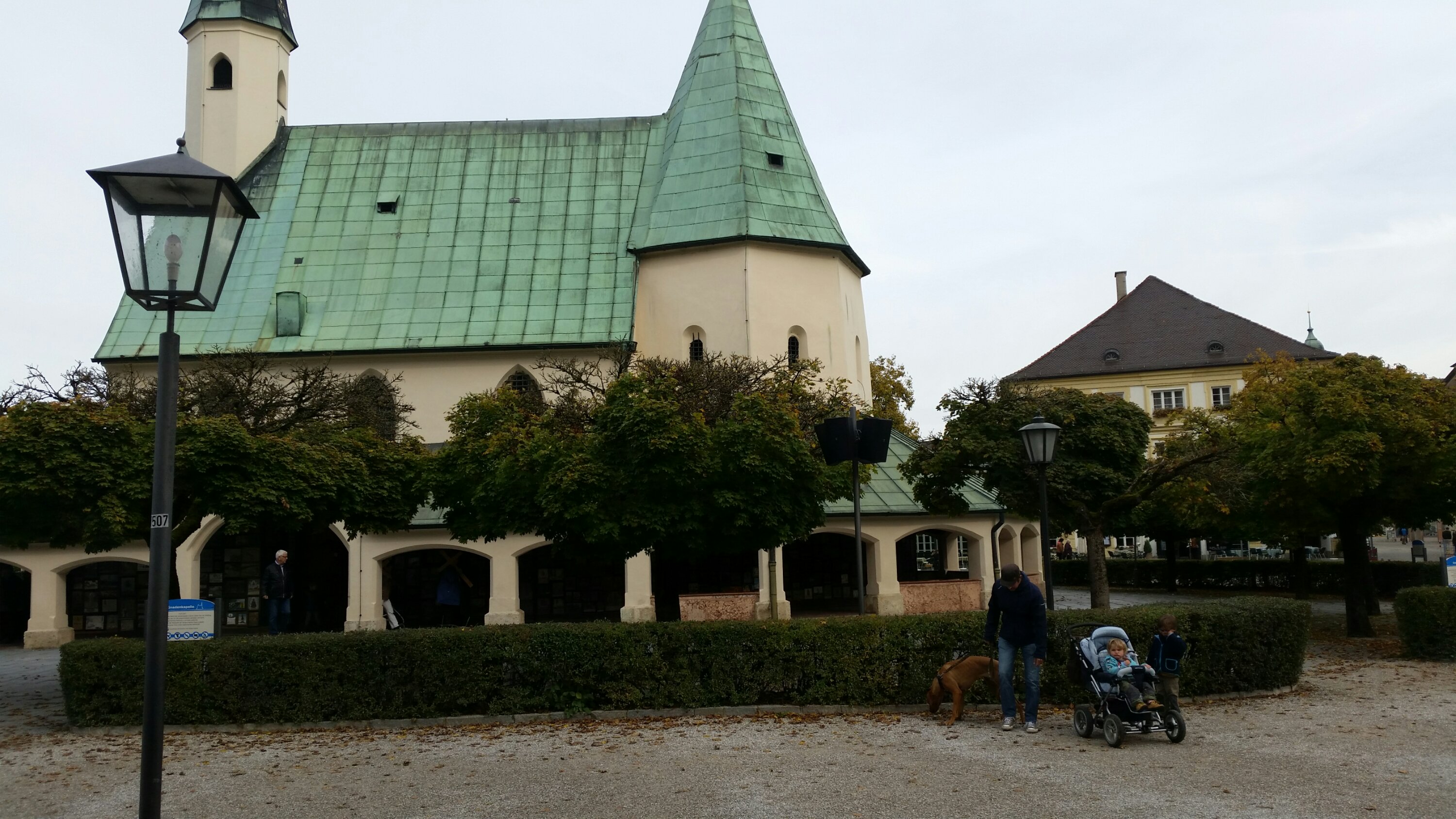 Die Gnadenkapelle im Hintergrund. Alles sehr religiös da