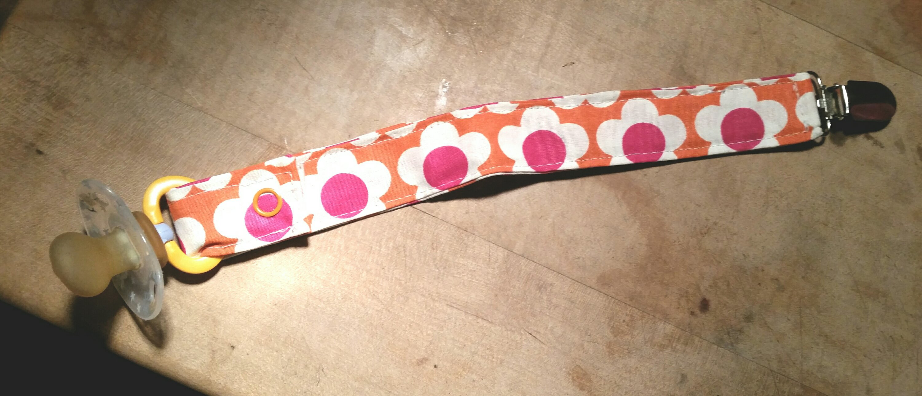 Aber davon lassen wir uns natürlich den Tag nicht verderben. Gestern Abend hab ich meinem Sonnenschein noch schnell ein Schnullerband genäht. Sie liebt es ❤.