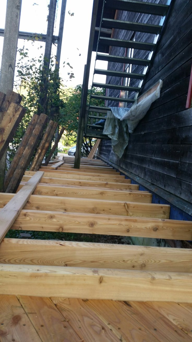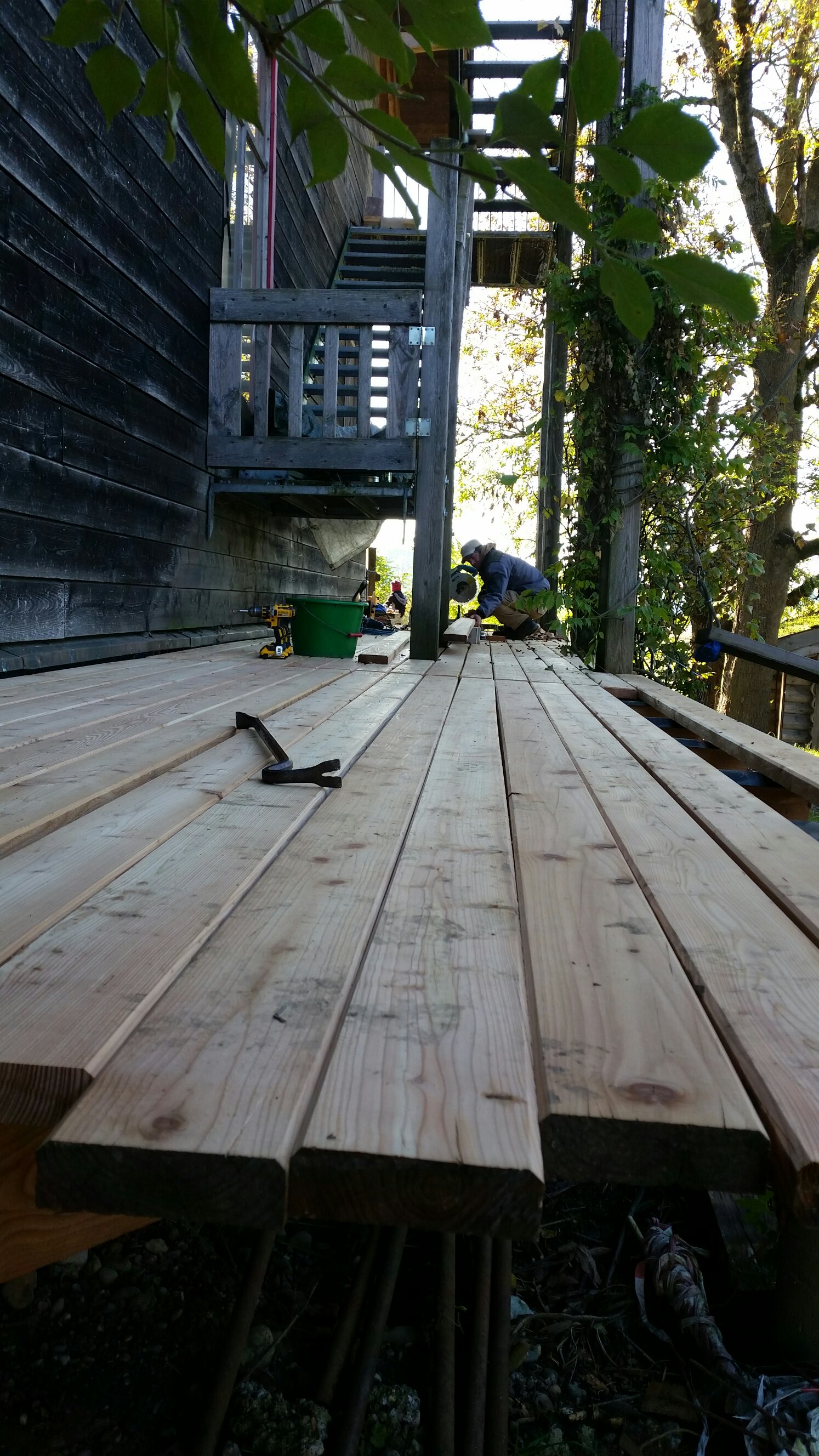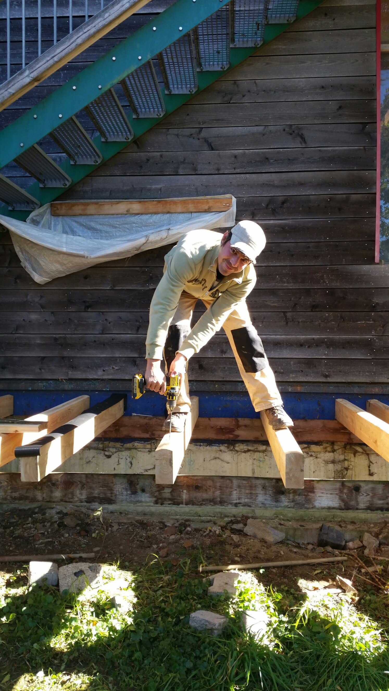 Anschließend hilft Jojo mir Stempeln und Stefan hilft Phil gefühlte 800 Schrauben aus den letzten alten Brettern der Veranda zu ziehen. Sieht das nicht total ulkig aus?😅