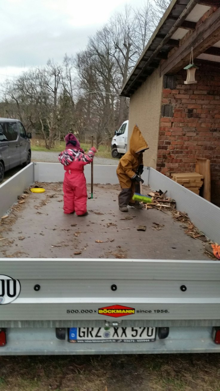 Und schon sind wir wieder mittendrin. Gestern nachmittag hat dann doch tatsächlich kurz die Sonne rausgeschaut. Da haben wir uns schnell angezogen und sind raus. Die Familie hatte einen Termin und wir wollten die Kartoffelhalle vom Dreck befreien. Das sind alles noch Folgen von Hochwasser. Heftig was so n bisschen Wasser anrichten kann.