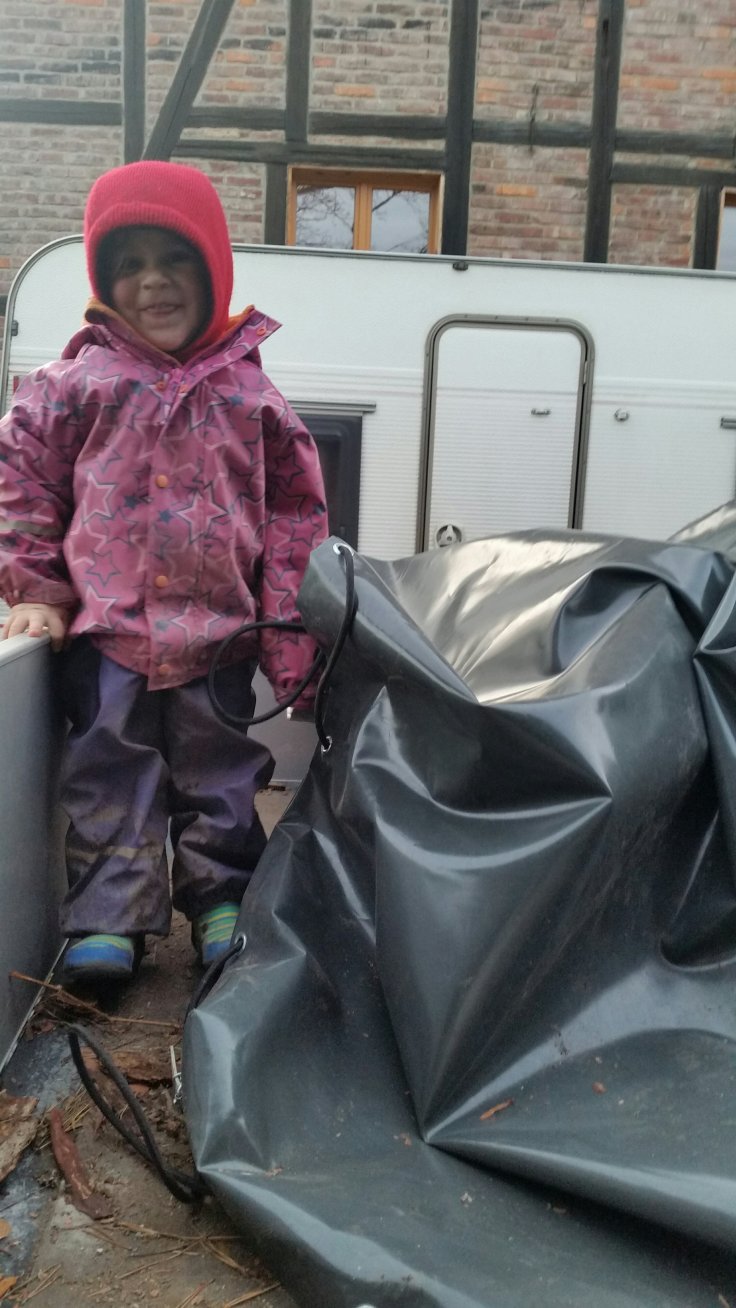 Ist fast wie Schneeschippen. Nur ohne Schnee. Und dann stellen wir mittendrin fest, dass wir ja so gar nichts von der Sonne draußen haben. Naja. Wenigstens die Kinder können ein bisschen Vitamin D tanken.