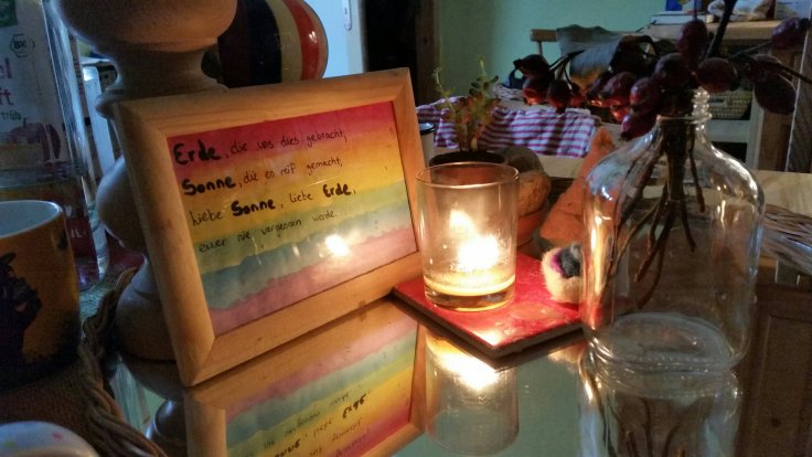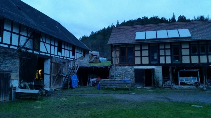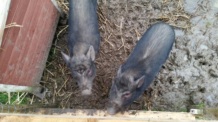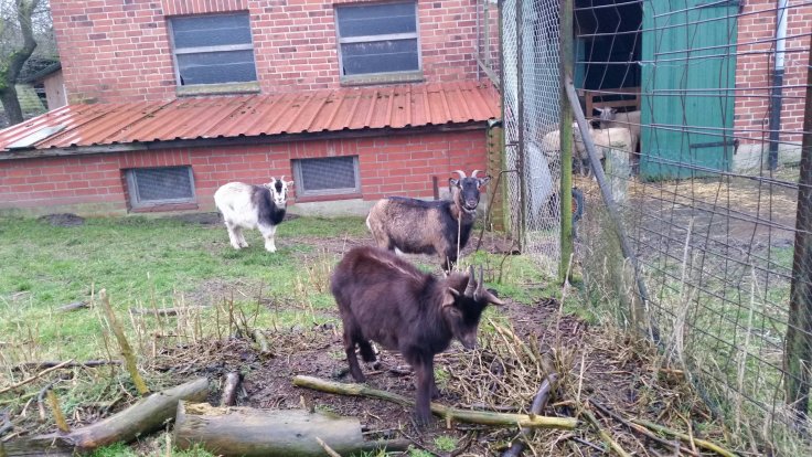 Und die Tiere sind ja auch noch da. Abends ist immer Fütterungsrunde. Heute kamen uns plötzlich die zwei Schweine entgegen. Einfach mal ausgebüchst. Aber mit Futter lassen sie sich bereitwillig wieder in ihr Gehege locken.