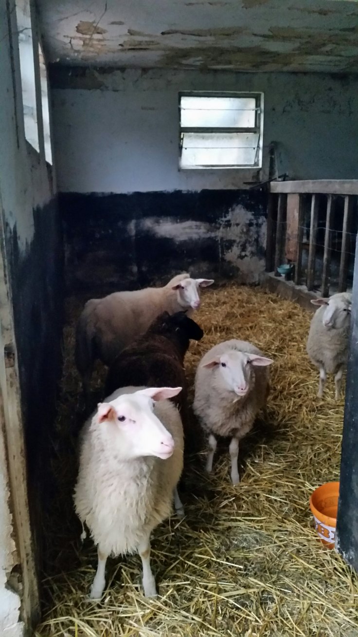 Vorgestern sind die Schafe ausgerissen und haben den Hafervorrat geplündert. Das ist ziemlich gefährlich, weil der Schafmagen sehr empfindlich ist. Sara gibt ihnen Natron ins Trinkwasser. Das neutralisiert. Wieder was gelernt.