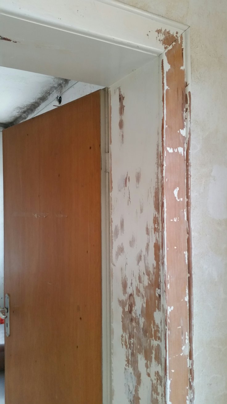 Ein weiteres Projekt heißt renovieren. Wieder mal. Also wenn wir nach unserer Tour nicht alles selber können, dann weiß ich auch nicht. Im oberen Stock sind noch die 50er Jahre sichtbar. Und lackierte weiße Türrahmen sehen halt auch irgendwie sch…unschick aus.