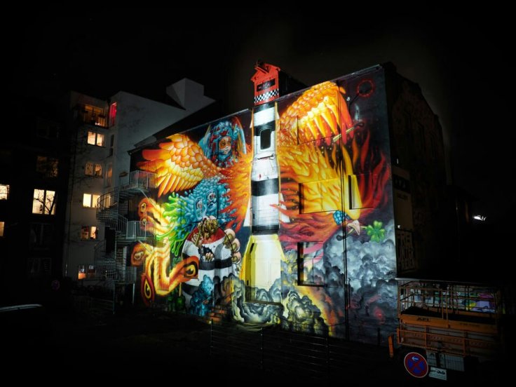 So wie Phil den Tag zuvor. Nur eben was ganz anderes. Er war mit Rainer im hamburger Schanzenviertel unterwegs. Es heißt wohl deshalb so weil es in der Nähe eine sternförmige Schanzenfestung gibt oder gab. Vor einiger Zeit wurde dieser Ortsteil noch St-Pauli nord genannt. Wer sich in der Galleristenszene auskennt, hat vielleicht schon davon gehört dass, das mittlerweile auch unter den hamburger Touristen berühmte OZM des Galleristen Alex Heimkind abgerissen werden soll. Das wohl größte und bekannteste Gemälde von ihm ist ein, an der 4-stöckigen Hausfassade großes Graffitibild.