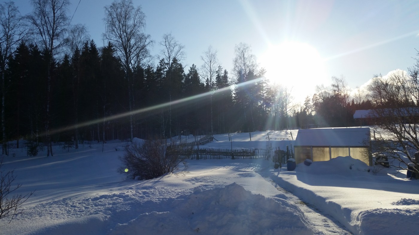 Wintersonne über dem Gemüsegarten. Wunderschön oder?
