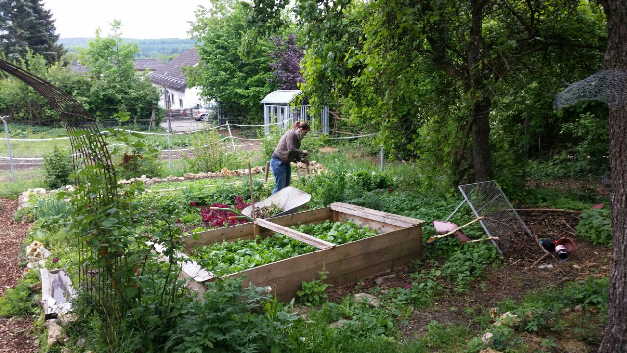 Heute Nachmittag ging es dann auf den außerhalb des Hofes gelegenen Acker. Auch hier muss umgegraben werden. Wobei die Erde nicht sprichwörtlich umgegraben wird, sondern gelockert und von Unkraut befreit.