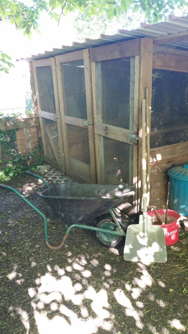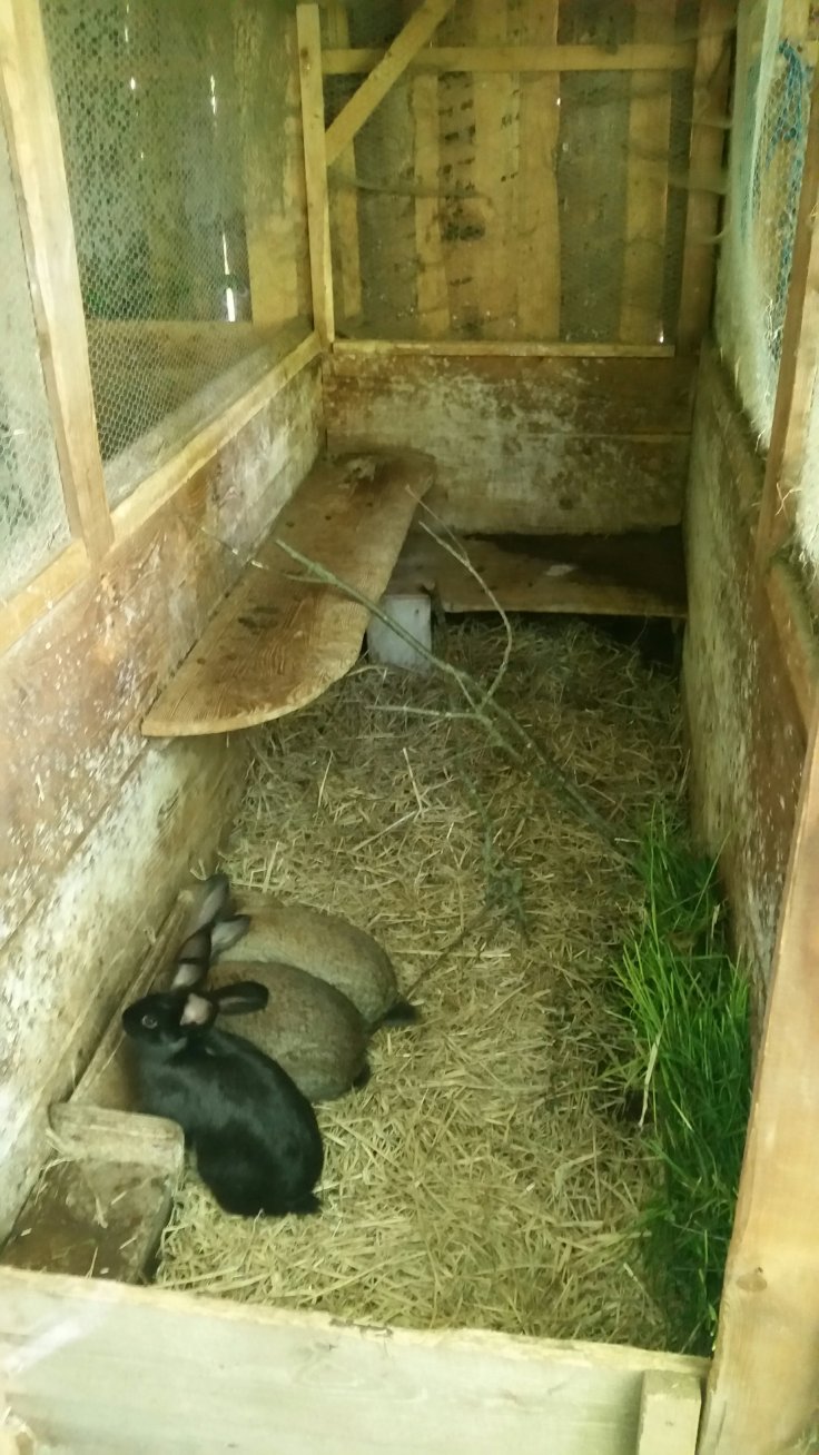 Am Tag davor hab ich die Hasenställe sauber gemacht. Vor ein paar Tagen ist leider die Mama-Häsin von den acht Jungen unerwartet gestorben 🙁. Keiner weiß warum.
