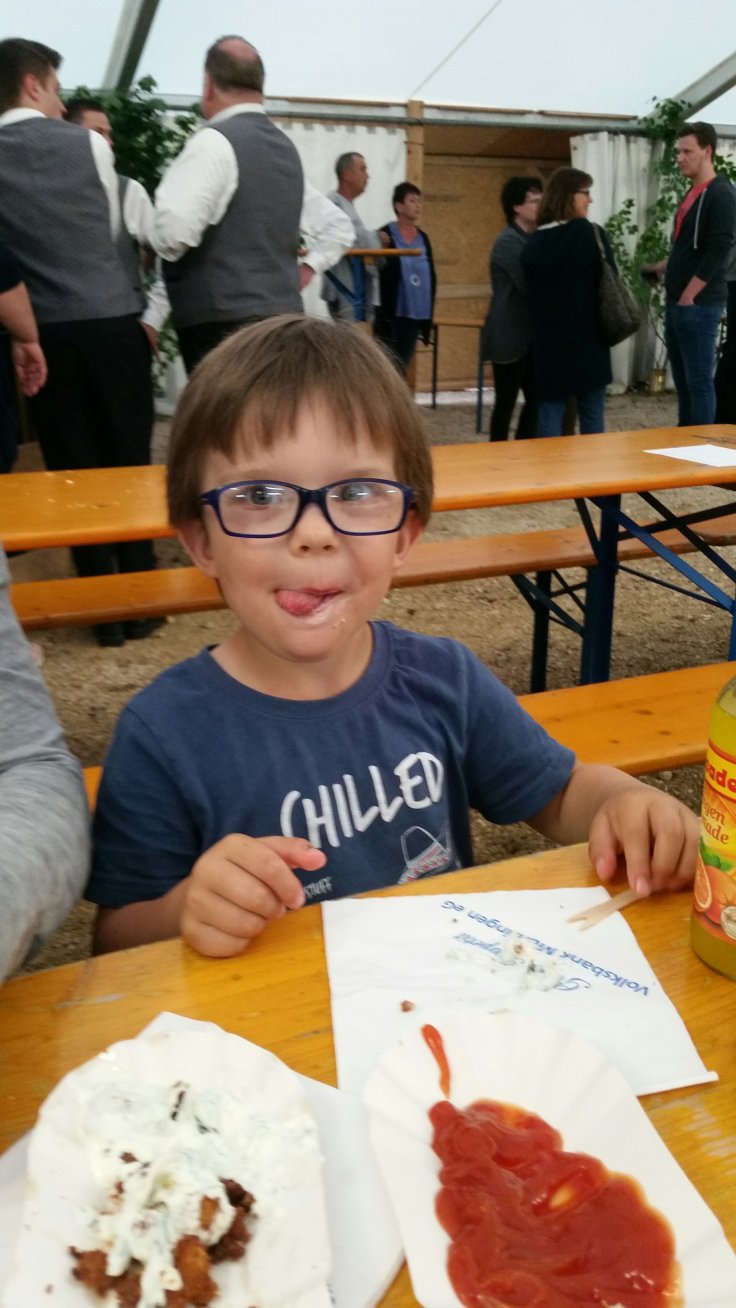 Es ist zwar komisch irgendwo inmitten von hunderten Menschen zu sitzen und (fast) keinen zu kennen, aber irgendwie fühlen wir uns schon als Teil dieser Gemeinde. Das merken wir auch an Fynn, der bereits zwei Freunde im Dorf gefunden hat ❤.