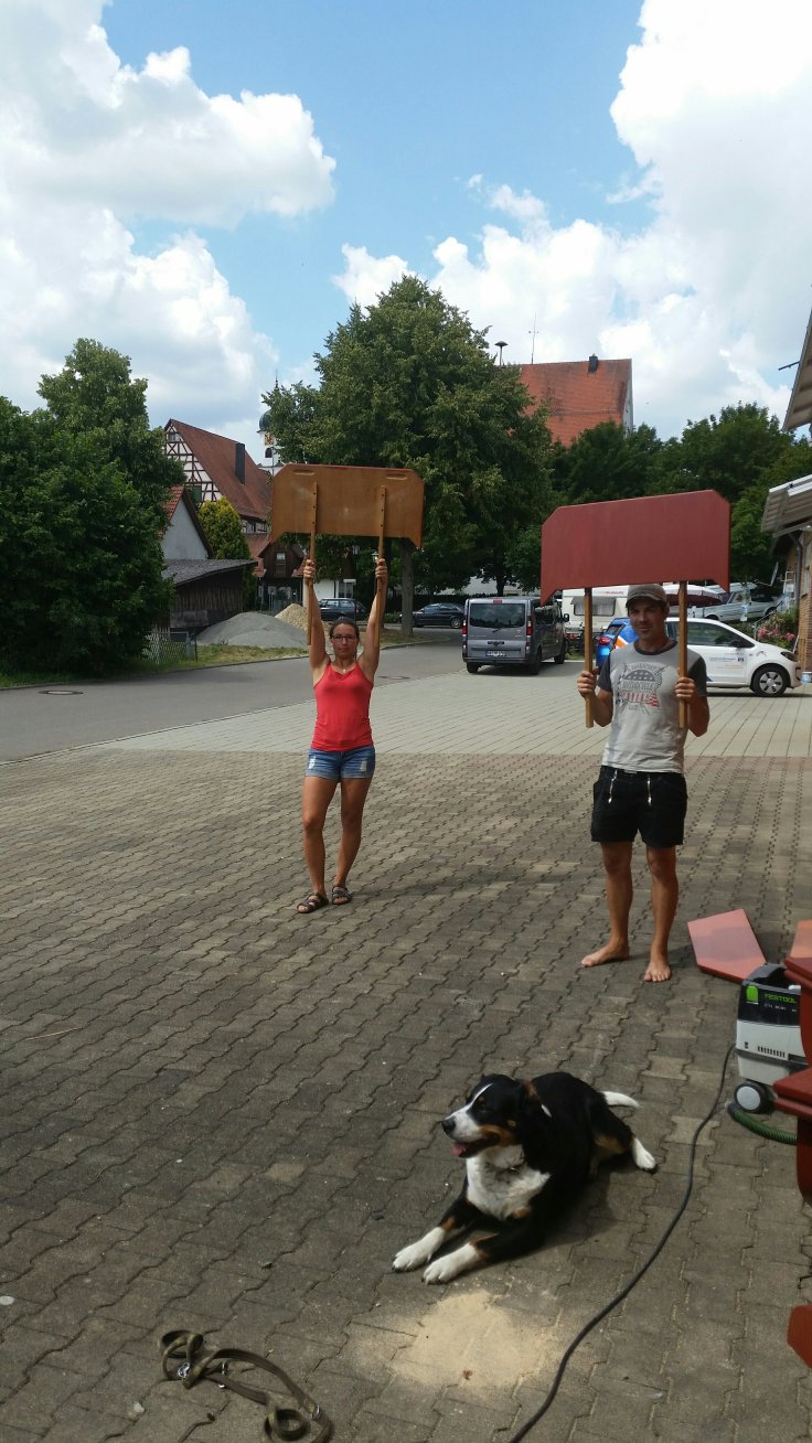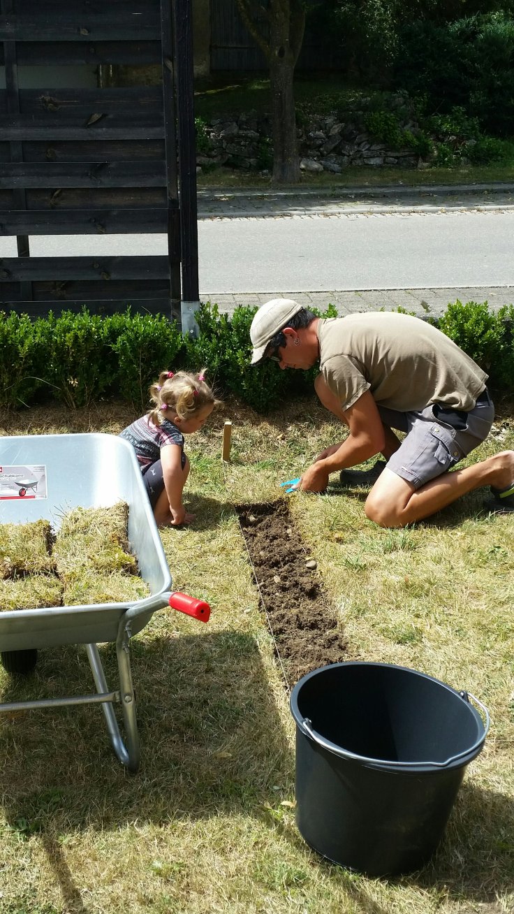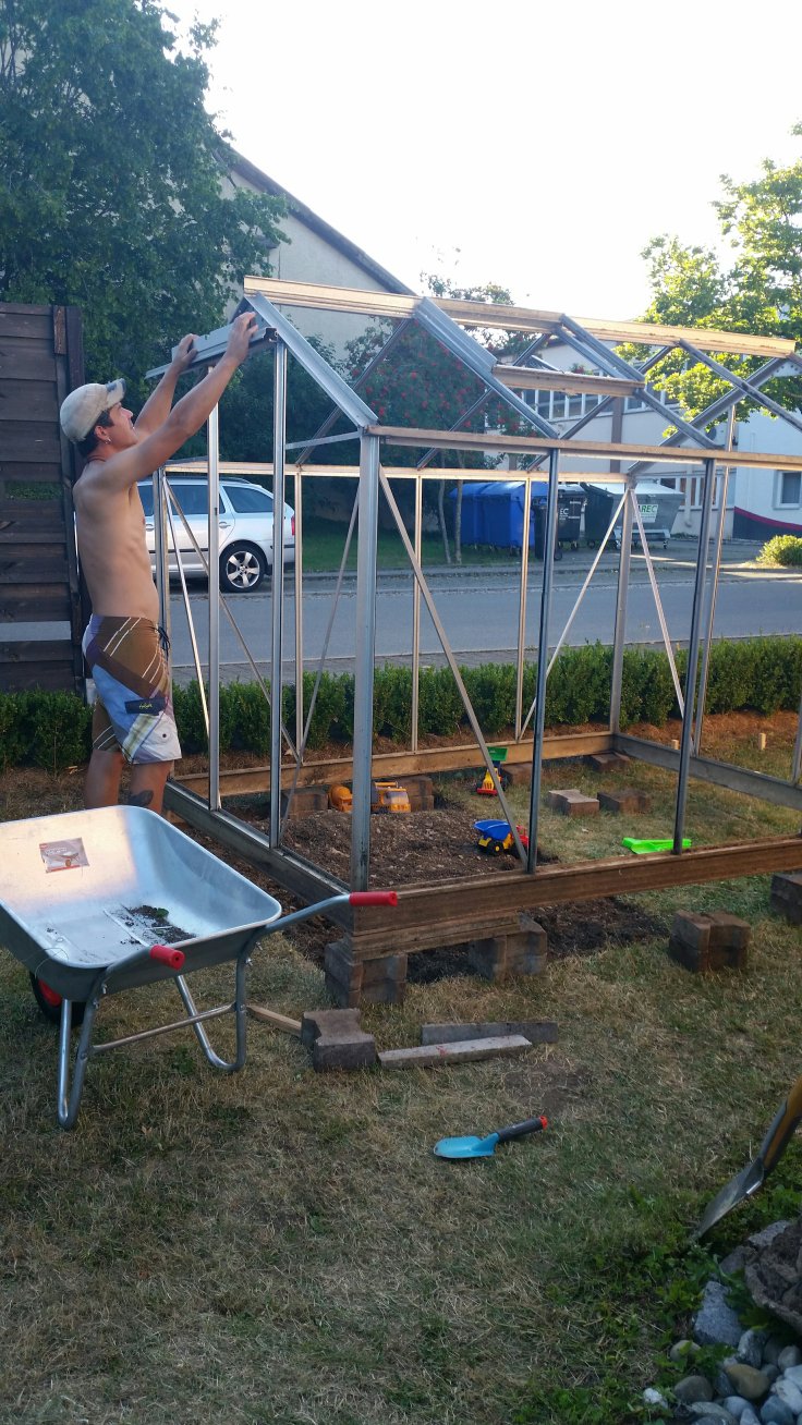 Nachdem wir nun in der Wohnung soweit erst Mal zufrieden sind, nutzen wir noch den Sommer, um den Garten zu gestalten. Da wollen wir uns jetzt richtig austoben! Bereits installiert sind ein Sichtschutz zur Straße und spontan ein Schaukelgerüst. Gebraucht gekauft in Hayingen. Glück muss man haben. Phil gräbt das erste Beet aus. Wir haben alles mit Pfosten angesteckt und träumen schon von der ersten Ernte 😉. Heute konnten wir ein gebrauchtes Gewächshaus ergattern 🤗. Ich würde euch echt gerne Bilder zeigen, aber allein das Bild von der Bank hat zehn Minuten gedauert 😅. Ich hole das nach. Versprochen.